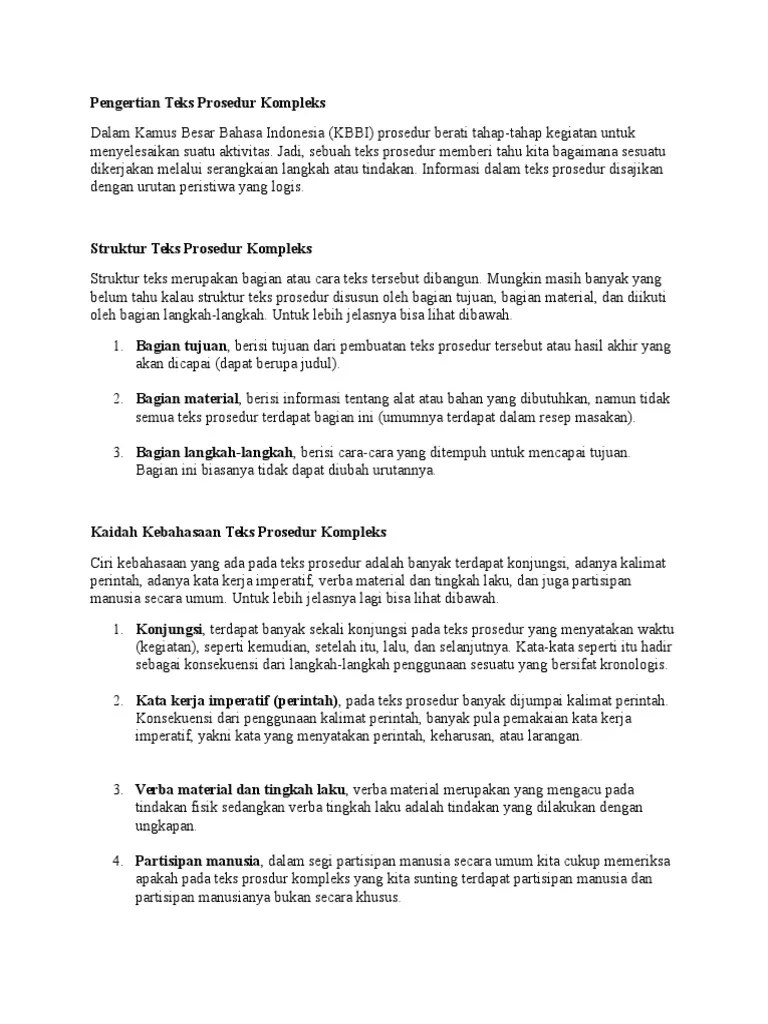 Jenis teks prosedur kompleks merupakan jenis teks prosedur yang didalamnya berisi langkah untuk melakukan atau membuat sesuatu secara runtut dengan menggunakan banyak aksi. Masukkan sayuran dan sambal secukupnya. Sebagai teks prosedur, teks tersebut telah berjalan sesuai manfaatnya. Sebuah teks prosedur bisa disusun atas 3. 3.apakah fungsi teks tersebut berdasarkan isinya?