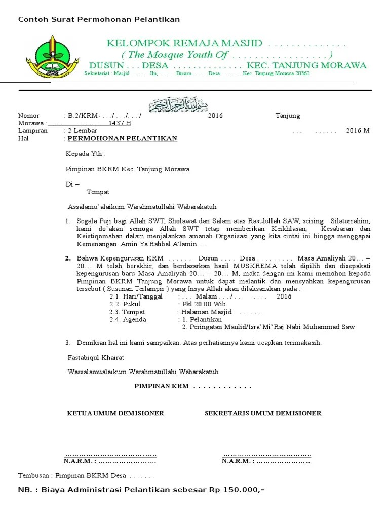Surat permohonan pelantikan remaja masjid by sazali6an6shary.